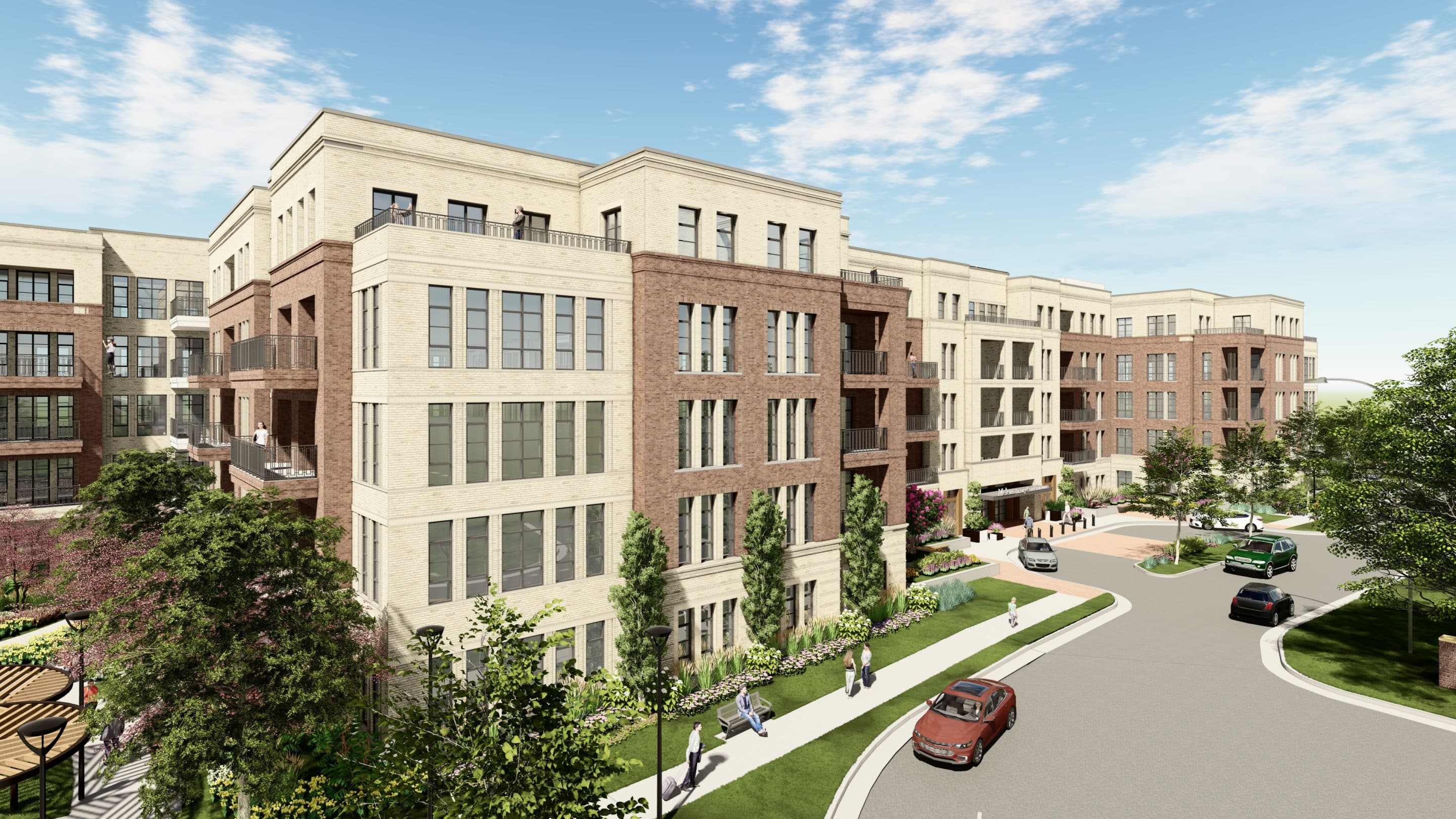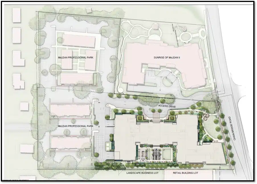 MV+A worked with Elm Street Development for the design and entitlement of a 104-unit luxury condo building in Mclean Virginia. The project, on the site of an existing office park, also includes a new signature open space in accordance with the comprehensive plan. The design skillfully breaks down its massing to better interface with single family neighbors and improves vehicular circulation into the site. MV+A led the team through Fairfax County’s Conceptual Development Plan Process and Final Development Plan Process with a unanimous approval.